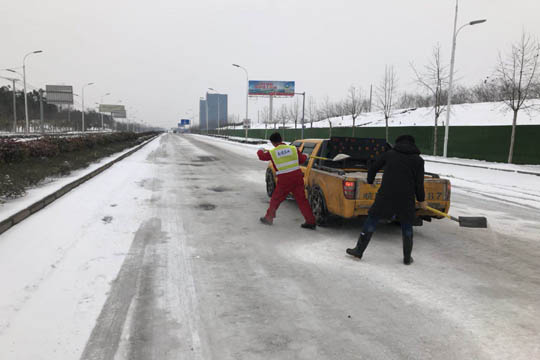 本次鏟冰除雪我公司平均每天投入除雪人員60人次、除雪鏟車6臺次、積雪轉(zhuǎn)運(yùn)車5臺次、皮卡車14輛次,共撒鋪融雪劑(工業(yè)鹽)32.5噸、此次鏟冰除雪,公司共計(jì)投入資金約26萬元。